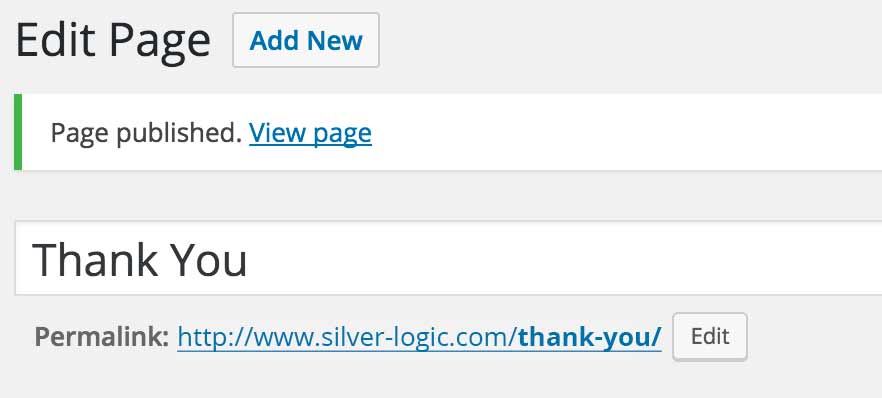 If you do not already have a “Thank You” page created somewhere in your site you can easily make a new one by going to Pages > Add New. You can call this page whatever you like, the only thing we need is the Permalink URL that is displayed under the title of your page.